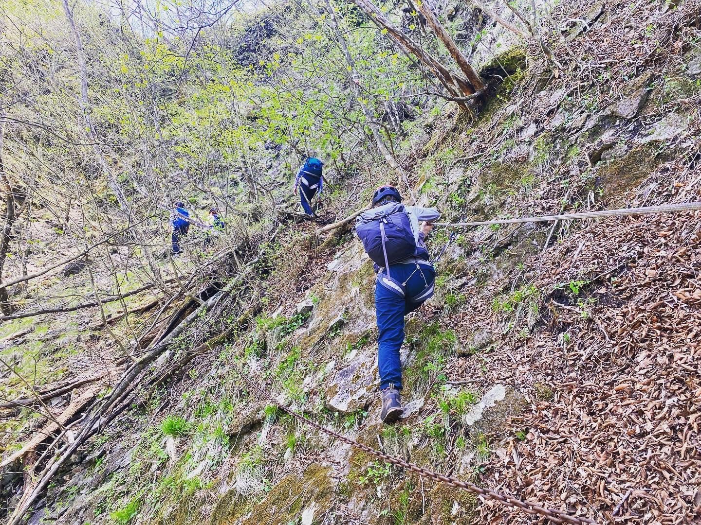 持ち物:登山一般装備、ヘルメット、ハーネス、スリング120cm×1、環付カラビナ×3、レインウェア、ヘッドランプ(替電池)、防寒着、手袋(革)、行動食、飲みもの、保温ボトル、保険証